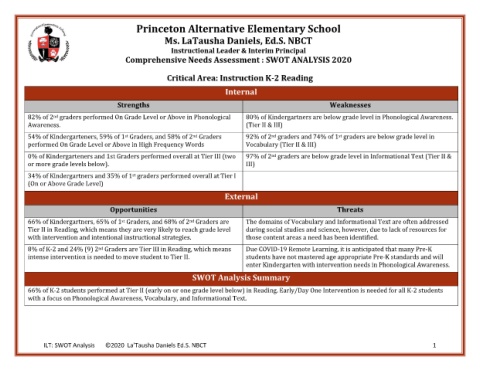 ILT: SWOT Analysis ©2020 La’Tausha Daniels Ed.S. NBCT 1