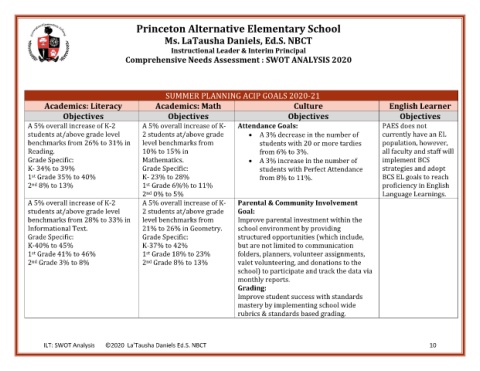 SUMMER PLANNING ACIP GOALS 2020-21