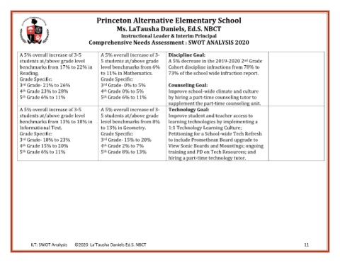 ILT: SWOT Analysis ©2020 La’Tausha Daniels Ed.S. NBCT 11
