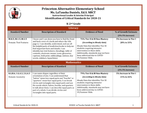 Critical Standards for 2020-21 ©2020 La’Tausha Daniels Ed.S. NBCT 1