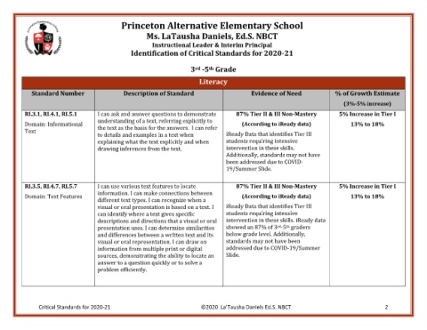 Critical Standards for 2020-21 ©2020 La’Tausha Daniels Ed.S. NBCT 2