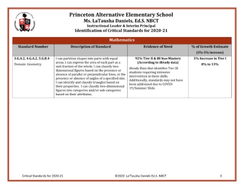 Critical Standards for 2020-21 ©2020 La’Tausha Daniels Ed.S. NBCT 3