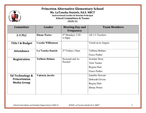 School Committees and Student Organizations 2020-21 ©2020 La’Tausha Daniels Ed.S. NBCT 2