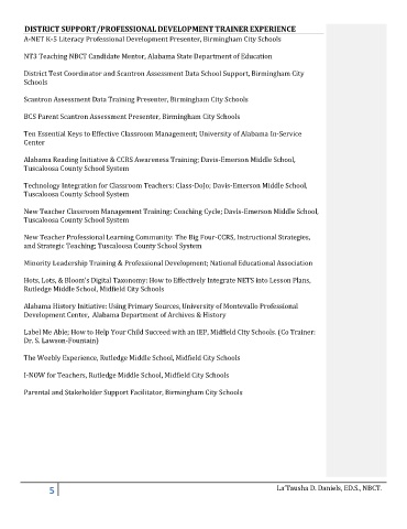 DISTRICT SUPPORT/PROFESSIONAL DEVELOPMENT TRAINER EXPERIENCE