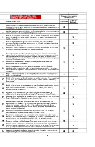 FUNCIONES DEL CLAUSTRO Y DEL CONSEJO (ÓRGANOS COLEGIADOS)