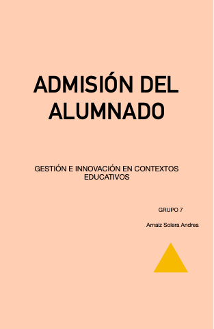 ADMISIÓN DEL ALUMNADO GESTIÓN E INNOVACIÓN EN CONTEXTOS EDUCATIVOS GRUPO 7 Arnaiz Solera Andrea