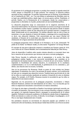 El nacimiento de la pedagogía progresista se produjo bien entrada la segunda mitad del S.XIX, aunque se desarrolló en el siglo posterior. Por entonces, la situación política nacional era muy complicada. Un período caracterizado por la Gloriosa, la proclamación de la Constitución de 1869...etc. Con esta última se aumentaron las libertades, pero no se logró una estabilidad política, dando lugar a la tercera guerra carlista. Finalmente, el período finaliza con la Restauración de la monarquía, donde los conservadores y progresistas se alternaban en el poder, produciendo así una inestabilidad política.