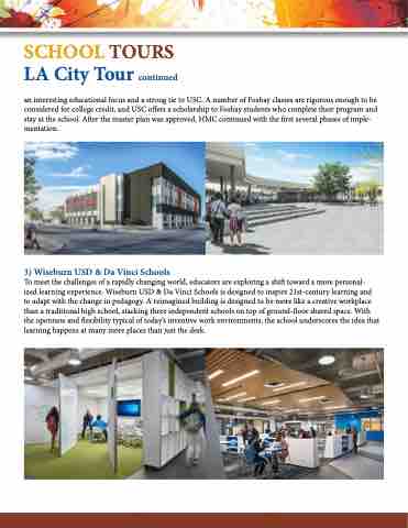 an interesting educational focus and a strong tie to USC. A number of Foshay classes are rigorous enough to be considered for college credit, and USC offers a scholarship to Foshay students who complete their program and stay at the school. After the master plan was approved, HMC continued with the first several phases of imple- mentation.