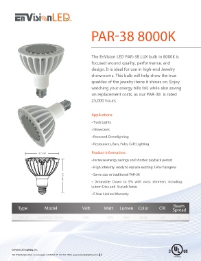 The EnVision LED PAR-38 LUX bulb in 8000K is