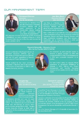 responsible for the overall operations of the QS He is the General Manager of V d’Unienville & Associates Co.
