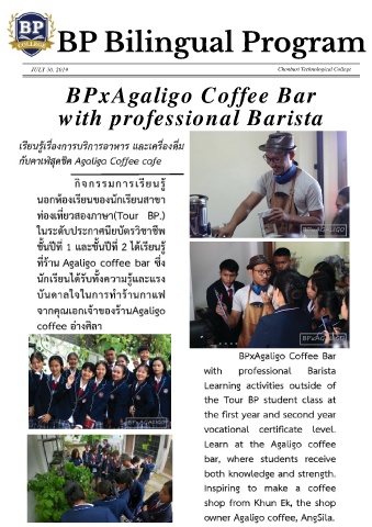 BP Bilin gu al Pr ogr am JULY 30, 2019 Chonburi Technological College BPxAgaligo Coffee Bar with professional Barista
