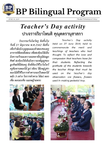 BP Bilin gu al Pr ogr am JUNE 30, 2019 Chonburi Technological College Teacher?s Day activity