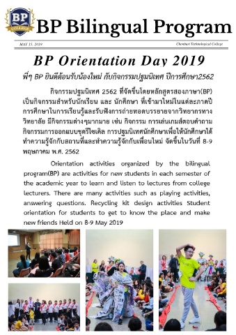 BP Bilin gu al Pr ogr am MAY 15, 2019 Chonburi Technological College BP Orientation Day 2019