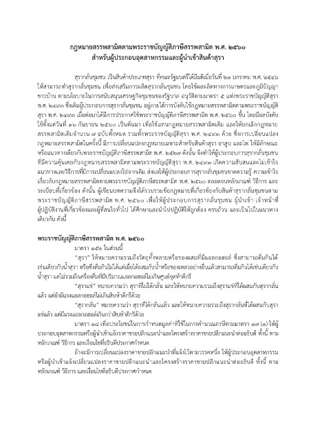 ระเบียบที่เกี่ยวข้อง ดังนั้น ผู้เขียนบทความจึงได้รวบรวมข้อกฎหมายที่เกี่ยวข้องกับสินค้าสุรากลั่นชุมชนตาม