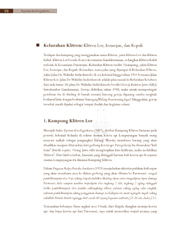 “klitren”. Dari lafal tersebut, kawasan yang ditinggali barisan kuli kereta api di seputar