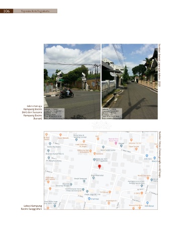 106 Toponim Kota Yogyakarta Jalan menuju Sumber: Survei Lapangan tahun 2019 Kampung Baciro (kiri) dan Suasana Kampung Baciro (kanan) Sumber: https://www.google.co.id/maps Lokasi Kampung Baciro Sanggrahan
