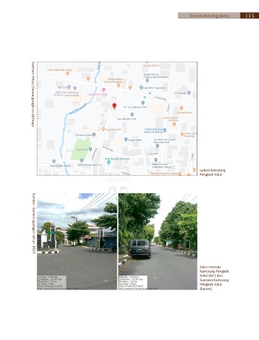 Toponim Kota Yogyakarta 115 Sumber: https://www.google.co.id/maps Lokasi Kampung Pengkok Kidul Sumber: Survei Lapangan tahun 2019 Jalan menuju Kampung Pengkok Kidul (kiri) dan Suasana Kampung Pengkok Kidul (kanan)