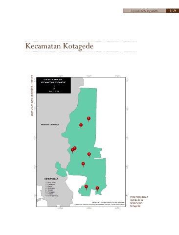 Toponim Kota Yogyakarta 169 Kecamatan Kotagede Sumber: Pengolahan data tahun 2019 Peta Persebaran kampung di Kecamatan Kotagede