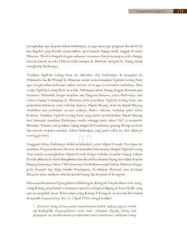 (menghadap raja) kepada Sultan Hadiwijaya, ia juga mencegat penguasa daerah Kedu