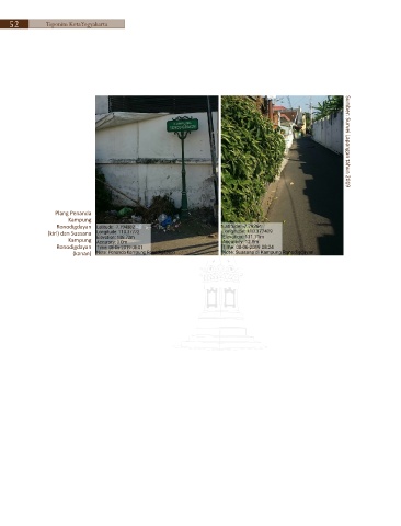 52 Toponim Kota Yogyakarta Plang Penanda Sumber: Survei Lapangan tahun 2019 Kampung Ronodigdayan (kiri) dan Suasana Kampung Ronodigdayan (kanan)