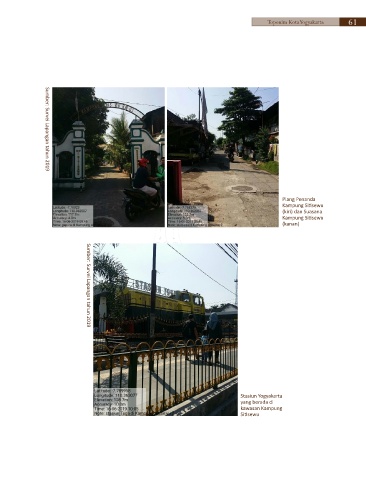 Toponim Kota Yogyakarta 61 Sumber: Survei Lapangan tahun 2019 Plang Penanda Kampung Sitisewu (kiri) dan Suasana Kampung Sitisewu (kanan) Sumber: Survei Lapangan tahun 2019 Stasiun Yogyakarta yang berada di kawasan Kampung Sitisewu