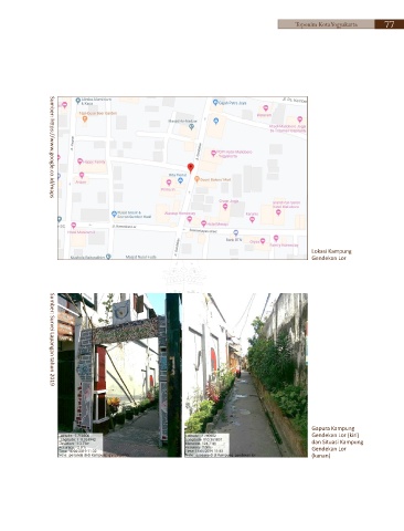Toponim Kota Yogyakarta 77 Sumber: https://www.google.co.id/maps Lokasi Kampung Gendekan Lor Sumber: Survei Lapangan tahun 2019 Gapura Kampung Gendekan Lor (kiri) dan Situasi Kampung Gendekan Lor (kanan)