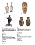 A PAIR OF SILVER, ENAMEL AND SHIBAYAMA VASES A BRONZE OKIMONO OF A BIRD SCARER