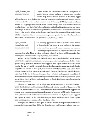 sulfates after they form. Sulfides are, however, sometimes found on exposed bronzes in urban