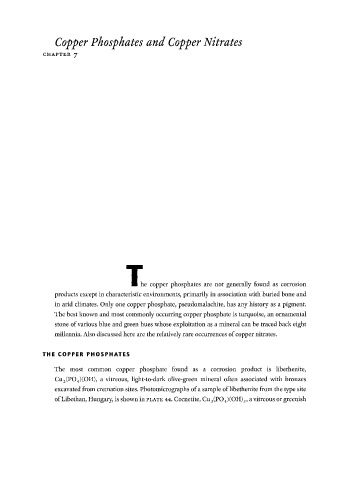 in arid climates. Only one copper phosphate, pseudomalachite, has any history as a pigment.