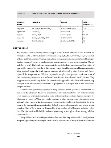 TABLE 8.1 CHARACTERISTICS OF SOME COPPER SILICATE MINERALS
