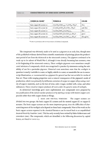 TABLE 9.2 CHARACTERISTICS OF SOME BASIC COPPER ACETATES