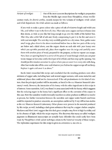 century work, De diver sis artibus, records recipes for two variants of verdigris: viride salsum