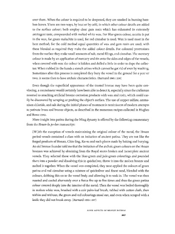 More insight into patina during the Ming dynasty is offered by the following commentary