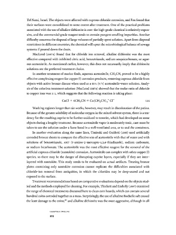 layered with nantokite. This study needs to be evaluated on actual artifacts. Treating bronze