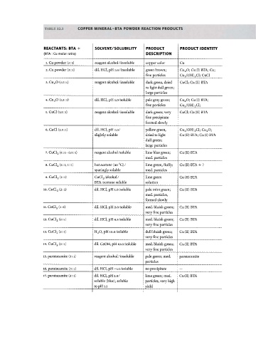 TABLE 12.1 C O P P E R M I N E R A L - B T A P O W D E R R E A C T I O N P R O D U C T S