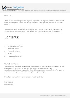 Thank you for contracting Malvern Irrigation Supplies for an irrigation installation at Gellibrand