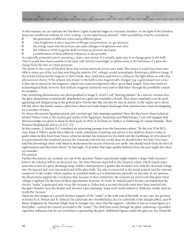 into the tapered and vacu-um-sealed end of the glass bulb. Th e wire is connected to the metal serpent and the external were still important prelimi-nary tests. I might be inclined to continue the “Dendera light” project, possibly in Wismar.