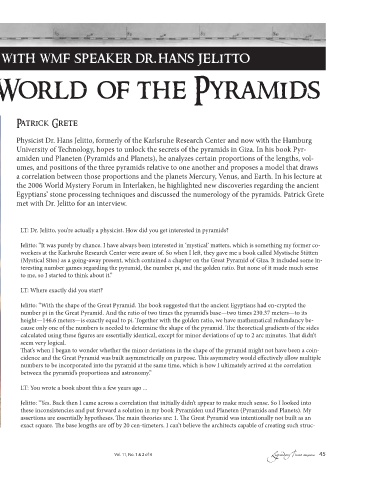 Egyptians’ stone processing techniques and discussed the numerology of the pyramids. Patrick Grete