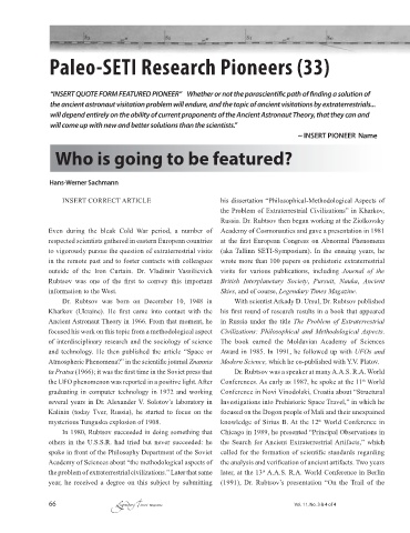 Kharkov (Ukraine). He rst came into contact with the his rst round of research results in a book that appeared of Paleo-Visitation – An Evaluation of the Current and he remains an Honorary Member of the A.A.S.