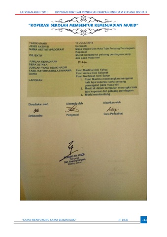 LAPORAN AKKS 2019 KOPERASI SEKOLAH MENENGAH SIMPANG RENGAM KLUANG BERHAD “KOPERASI SEKOLAH MEMBENTUK KEMENJADIAN MURID” “SAMA MENYOKONG SAMA BERUNTUNG” JR 0335 113