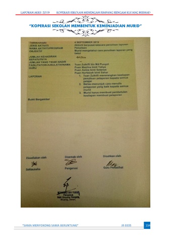 LAPORAN AKKS 2019 KOPERASI SEKOLAH MENENGAH SIMPANG RENGAM KLUANG BERHAD “KOPERASI SEKOLAH MEMBENTUK KEMENJADIAN MURID” “SAMA MENYOKONG SAMA BERUNTUNG” JR 0335 114