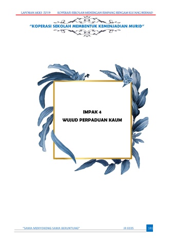LAPORAN AKKS 2019 KOPERASI SEKOLAH MENENGAH SIMPANG RENGAM KLUANG BERHAD “KOPERASI SEKOLAH MEMBENTUK KEMENJADIAN MURID” IMPAK 4 WUJUD PERPADUAN KAUM “SAMA MENYOKONG SAMA BERUNTUNG” JR 0335 131