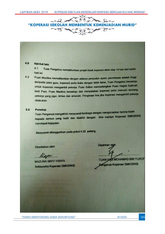 LAPORAN AKKS 2019 KOPERASI SEKOLAH MENENGAH SIMPANG RENGAM KLUANG BERHAD “KOPERASI SEKOLAH MEMBENTUK KEMENJADIAN MURID” “SAMA MENYOKONG SAMA BERUNTUNG” JR 0335 141