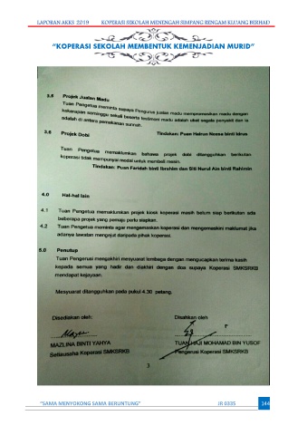 LAPORAN AKKS 2019 KOPERASI SEKOLAH MENENGAH SIMPANG RENGAM KLUANG BERHAD “KOPERASI SEKOLAH MEMBENTUK KEMENJADIAN MURID” “SAMA MENYOKONG SAMA BERUNTUNG” JR 0335 144