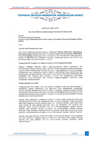 LAPORAN AKKS 2019 KOPERASI SEKOLAH MENENGAH SIMPANG RENGAM KLUANG BERHAD “KOPERASI SEKOLAH MEMBENTUK KEMENJADIAN MURID” “SAMA MENYOKONG SAMA BERUNTUNG” JR 0335 156