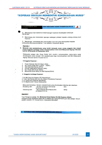 LAPORAN AKKS 2019 KOPERASI SEKOLAH MENENGAH SIMPANG RENGAM KLUANG BERHAD “KOPERASI SEKOLAH MEMBENTUK KEMENJADIAN MURID” “SAMA MENYOKONG SAMA BERUNTUNG” JR 0335 15