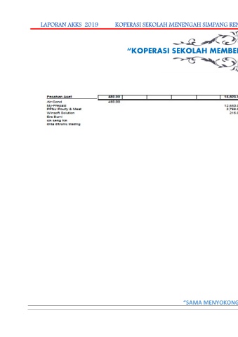 LAPORAN AKKS 2019 KOPERASI SEKOLAH MENENGAH SIMPANG RENGAM KLUANG BERHAD “KOPERASI SEKOLAH MEMBENTUK KEMENJADIAN MURID” “SAMA MENYOKONG SAMA BERUNTUNG” JR 0335 183