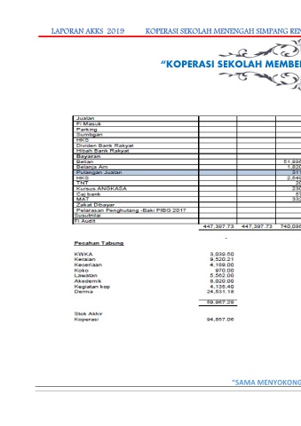 LAPORAN AKKS 2019 KOPERASI SEKOLAH MENENGAH SIMPANG RENGAM KLUANG BERHAD “KOPERASI SEKOLAH MEMBENTUK KEMENJADIAN MURID” “SAMA MENYOKONG SAMA BERUNTUNG” JR 0335 185