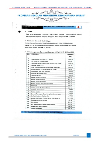 LAPORAN AKKS 2019 KOPERASI SEKOLAH MENENGAH SIMPANG RENGAM KLUANG BERHAD “KOPERASI SEKOLAH MEMBENTUK KEMENJADIAN MURID” “SAMA MENYOKONG SAMA BERUNTUNG” JR 0335 17