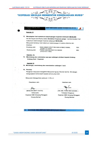 LAPORAN AKKS 2019 KOPERASI SEKOLAH MENENGAH SIMPANG RENGAM KLUANG BERHAD “KOPERASI SEKOLAH MEMBENTUK KEMENJADIAN MURID” “SAMA MENYOKONG SAMA BERUNTUNG” JR 0335 24